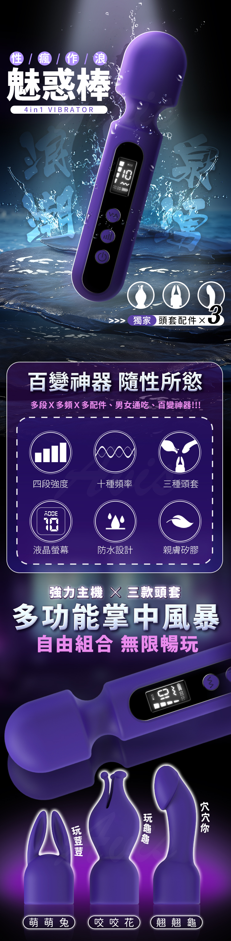 結合 4段強度 × 10種頻率 × 3款可替換頭套,